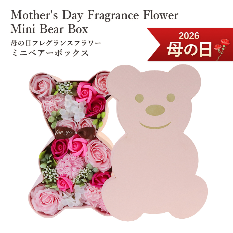 かわいいベアちゃん型のボックスタイプのソープフラワーアレンジ。