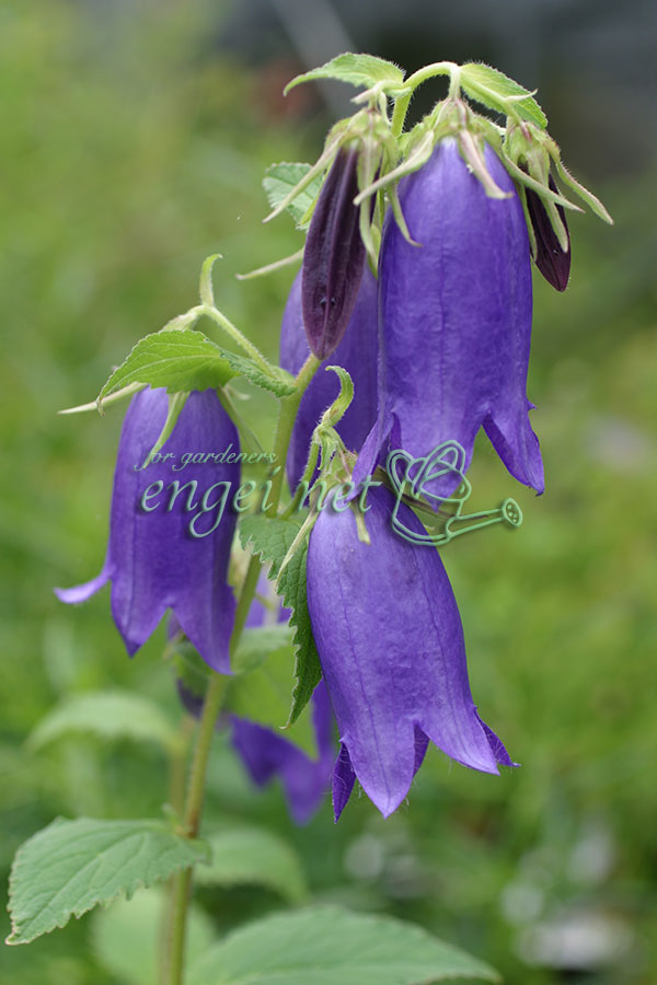 ホタルの飛び交う頃に花をつける、子供がホタルを袋状の中へ入れ光らせて遊んだことなどからホタルブクロの名前がついたと言われています。茶花や切花にもでき、丈夫でカンパニュラの中では育てやすい山野草ですのでビギナーの方にもおすすめです。コンテナや鉢植えに最適。栽培も容易です。花色は青みの強い紫色です。