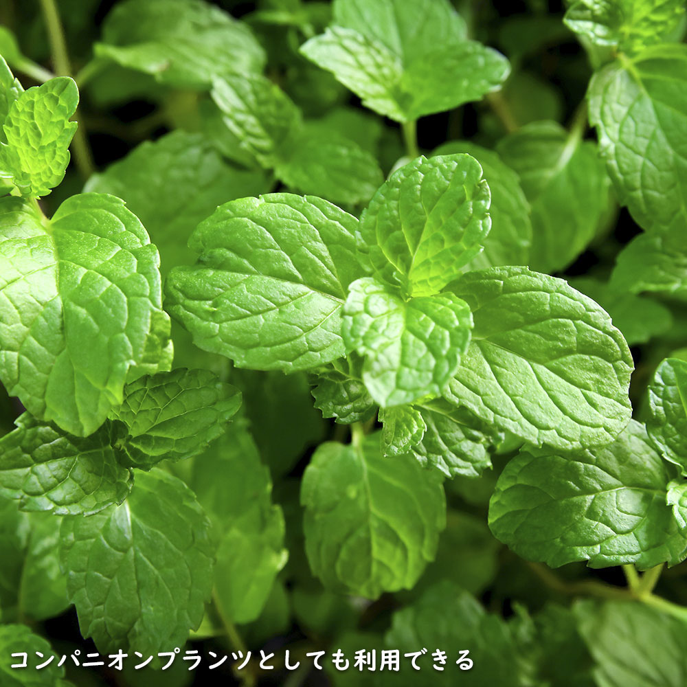 ペパーミントは多年草です。冬になり霜にあたると地上部は枯れてしまいますが根が生きており春に復活します。ハーブの一種であり、メントール臭が特徴です。葉は青々とした緑色をしています。非常に剛健です。ガムや香料など多く利用され葉を乾燥させたものを利用します。殺菌効果もあります。