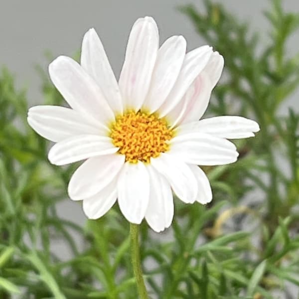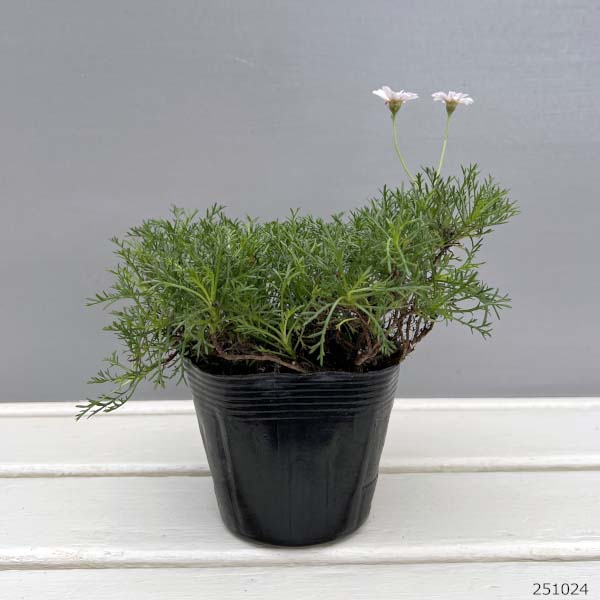 ニューサマーデイジー ステラは、マーガレット×ローマンカモミールの属間雑種。草丈は低いままで横に広がる草姿で、4月下旬から11月中旬くらいまで、薄桃色から白色へ変化する極小輪タイプの花を長期間咲かせてくれます。暑さにも寒さにも強く(-3度から37度)、年間を通して緑葉を保つので新しいグランドカバープランツとしてもおすすめです。※食用には適しません。