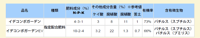 イデコンポは出光グループが開発したバチルス菌をはじめとした有用微生物と、有機質肥料を配合した指定配合肥料です。
