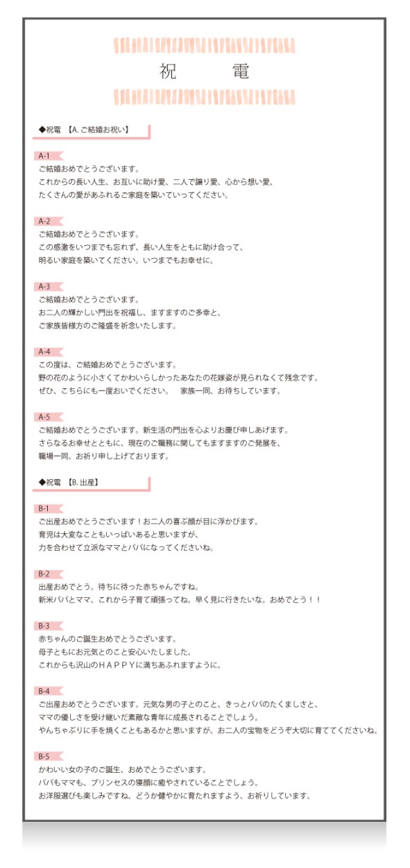 電報の文例を選択してください。