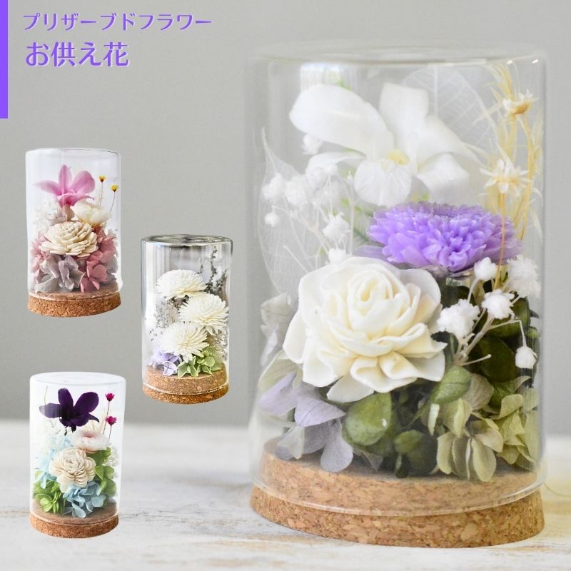 プリザブドフラワー コルクドームのお供え花