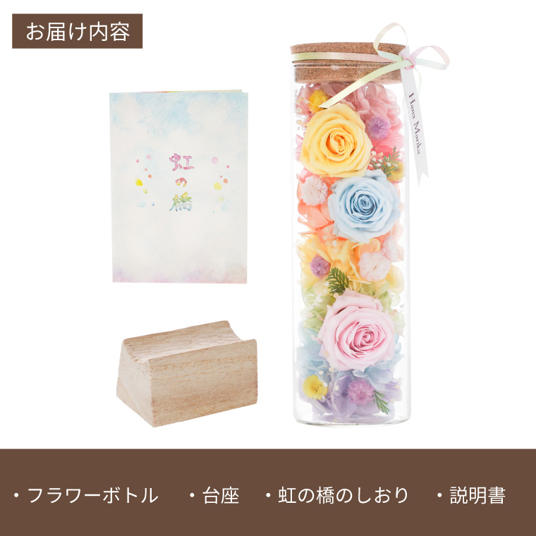 ■セット内容:フラワーボトル、台座、虹の橋のしおり、説明書