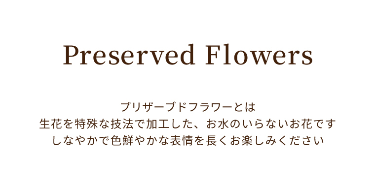 ※お花の痛みや色あせを早めますので、湿気・直射日光を避けてお飾りくださいませ。