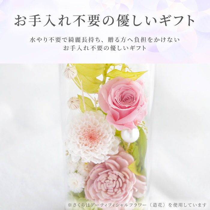 ※天然素材のプリザーブドフラワーを使用しているため写真とまったく同じ形・配置にはなりません。その点、ご了承の上ご購入くださいませ