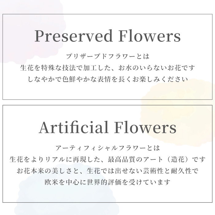 ■種類:プリザーブドフラワー、ソラフラワー、アーティフィシャルフラワー(造花)