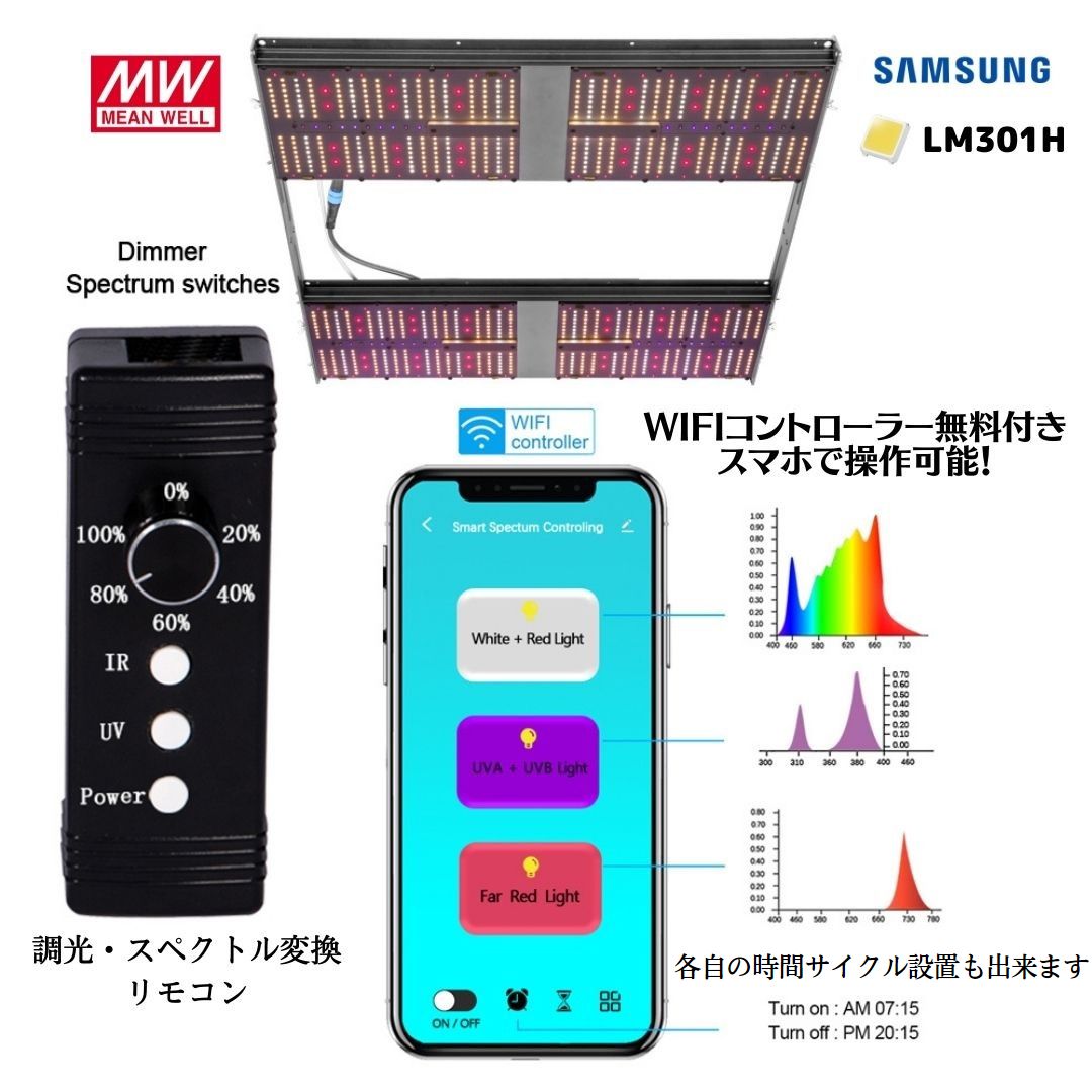 スペクトル切替機能:専用リモコン・スマホ(wifiコントローラー別途購入必要あり)によるスペクトルが合計4チャネル(全開/Lm301H+Red/Far-red/UV-A+UV-B)で変換・切替可能です。