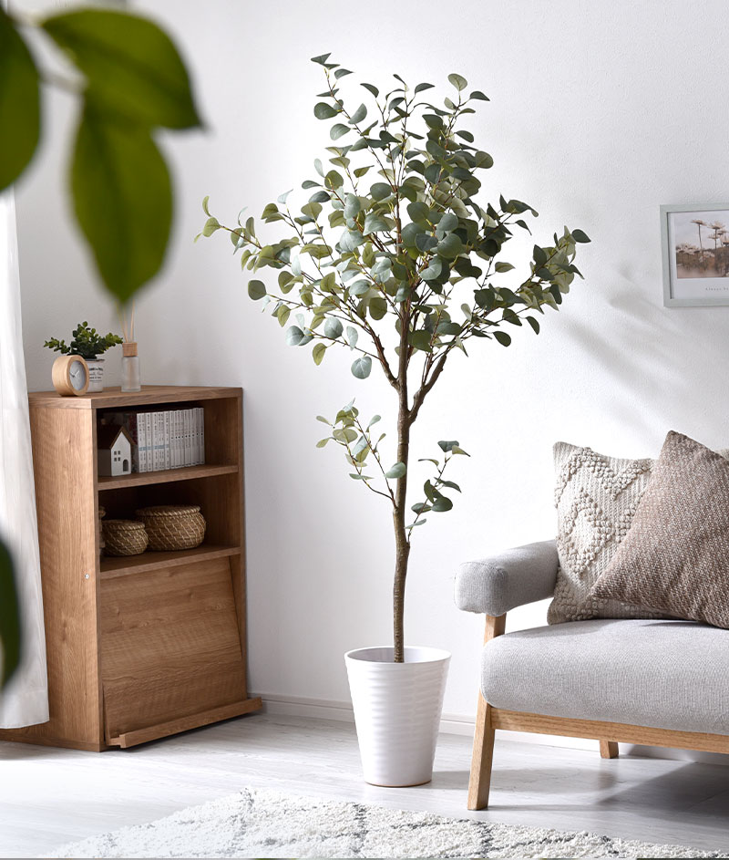 お部屋を明るい雰囲気にしてくれるユーカリの木。