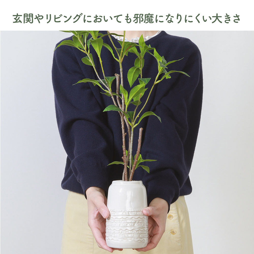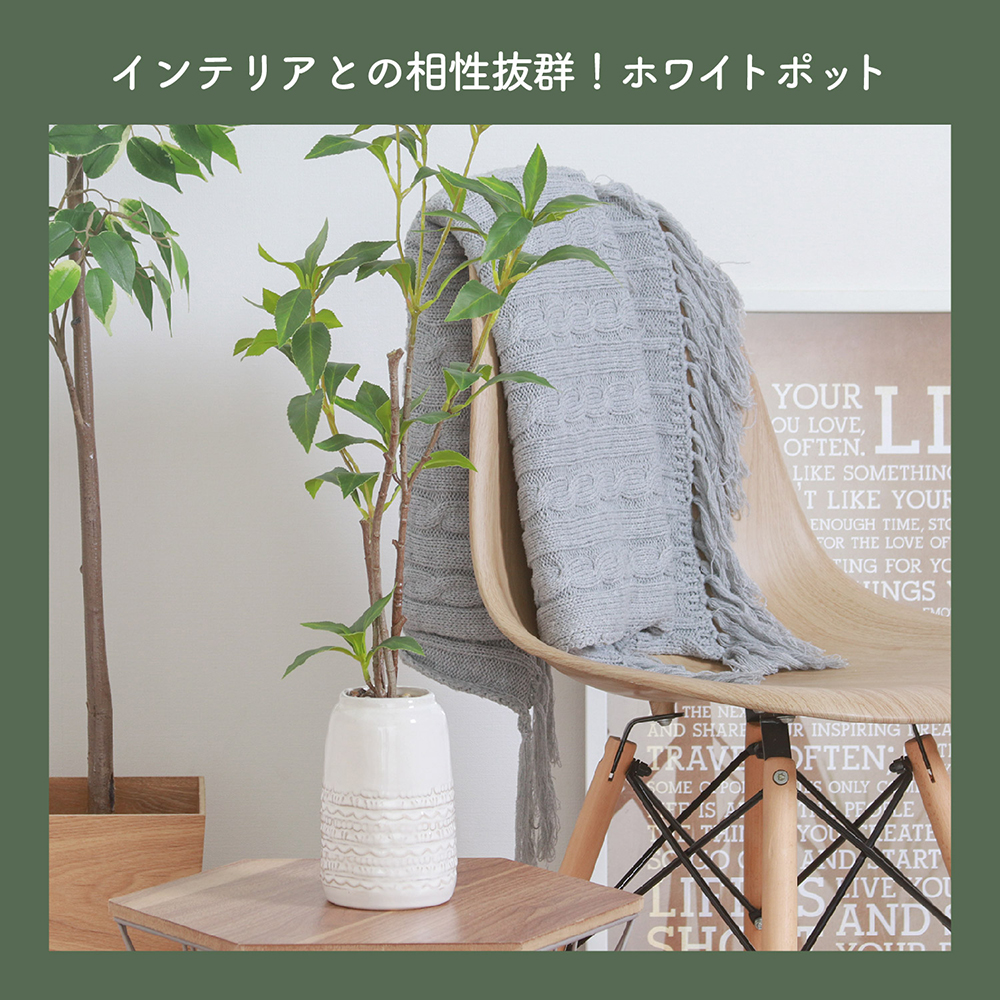 上品なホワイトのセラミックポット付きで、そのまま飾るだけで完成度の高いインテリアに!