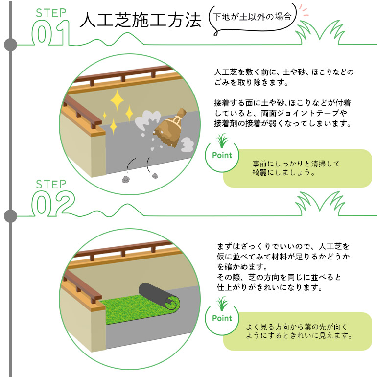 人工芝の場合は、土が不要なので、屋上やベランダの芝生には最適です。