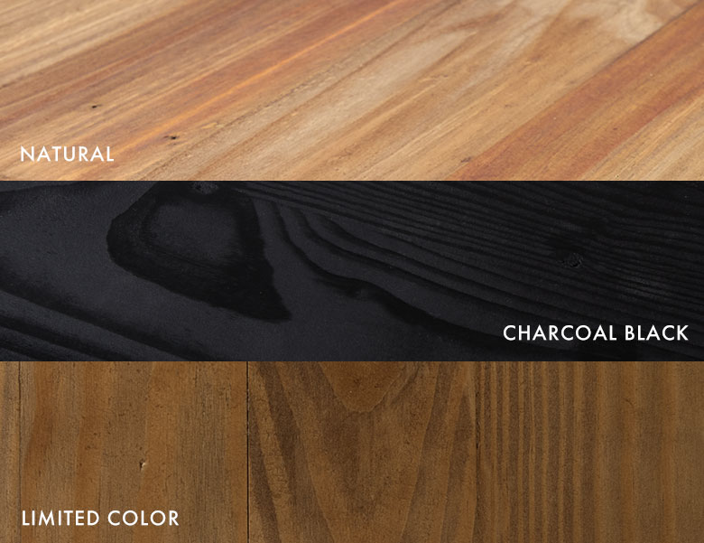 木目がほんのり透けて見える塗装で仕上げた チャコールブラックは、単なる黒ではなく、深みのある色合いが魅力。空間を引き締め、スタイリッシュな雰囲気を演出します。