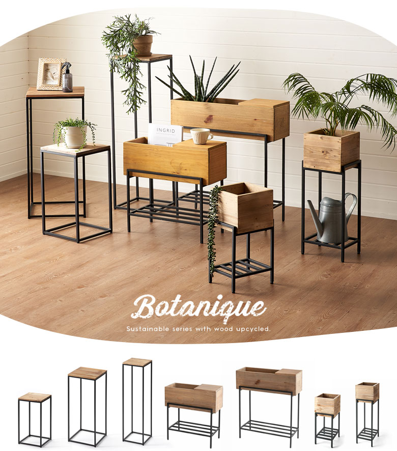 不要になった木材をアップサイクルしたサステナブルな[ Botanique -ボタニーク- ]シリーズ。ヴィンテージ感の残るこなれた風合いは植物と相性抜群。シリーズで使いたくなる豊富なバリエーションをご用意しています。お気に入りのグリーンと合わせて、シリーズまるごと楽しんで。
