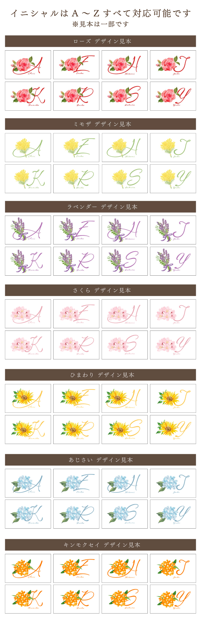 ※文字色はお花に合わせたカラーとなります